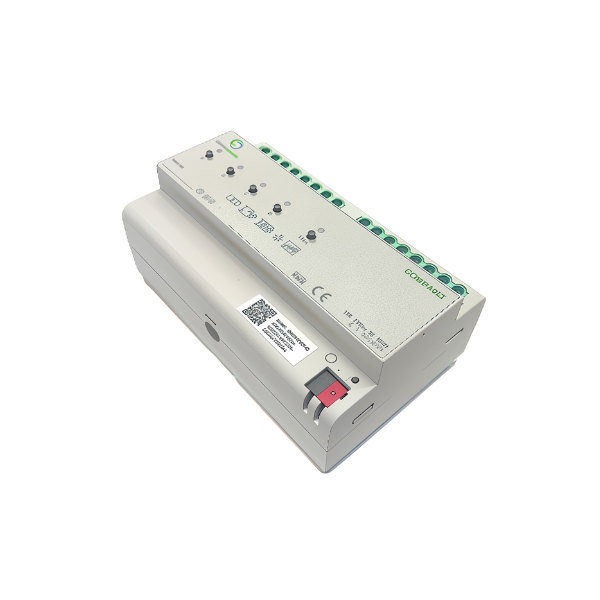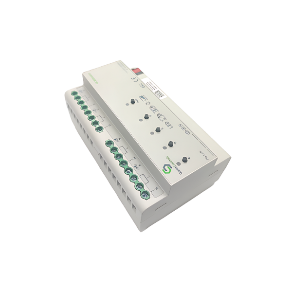 Connection to the KNX bus system is established via a dedicated bus connection terminal, allowing seamless integration into KNX-based building automation networks. Once connected, the actuator can be controlled individually or in groups, and can be incorporated into intelligent functions such as scene control, time-based scheduling, centralized monitoring, and remote access via KNX visualization platforms. Each channel also supports up to 16 scene configurations, enabling users to create and recall multiple predefined lighting settings for different environments and usage scenarios. This integration supports both residential and commercial applications where flexibility, energy efficiency, and user comfort are priorities.